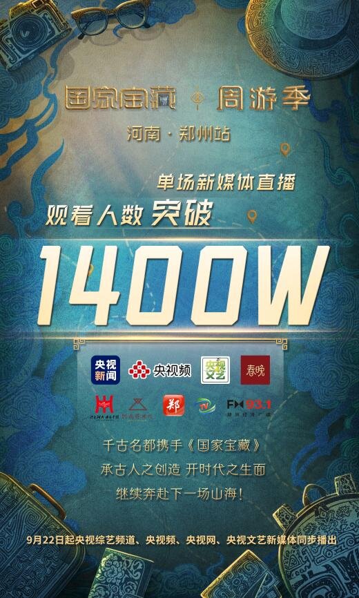 节目首站落子中原腹地郑州。于9月8日开播前夕,“001号讲解员”张国立联袂演员王玉雯、主持人苏眉文,开启沉浸式文化直播,央视新闻、央视频等平台同步放送,单场观看量突破1400万人次,掀起全民关注国宝文化的热潮。